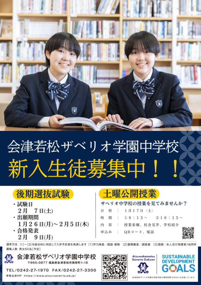 2026.01.08 2026.01.27 お知らせ 中学校 後期選抜試験、土曜公開のお知らせ admin@junior 後期選抜試験については、こちらのページの募集要項をご確認ください。 お申し込みは、お電話またはこちらのフォームよりお願いします。(1/17分のフォームです)